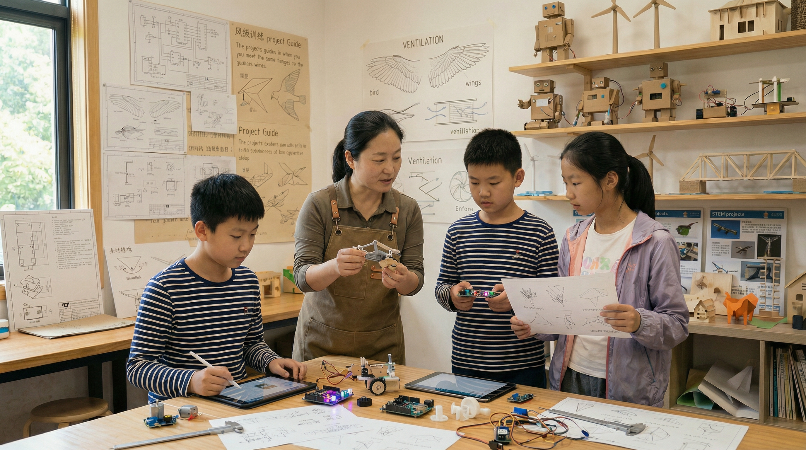 项目化整合:把编程/电子与工程设计流程融合(提出 → 计划 → 原型 → 测试),以“功能达成 + 表达呈现”为标准 主题选题:聚焦高“出片率”的课题,如机械、仿生、结构工程、天体运动等 AI 赋能:借助提示词、图像/数据工具辅助表达与复盘 交付包:项目样章、代码/电路模板、任务链海报、路演脚本、短视频剪辑模板、家长会流程